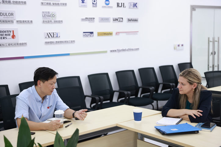 會后,德國SITA總經(jīng)理移步至二樓客戶體驗中心 & 材料研發(fā)實驗室進(jìn)行參觀與交流。